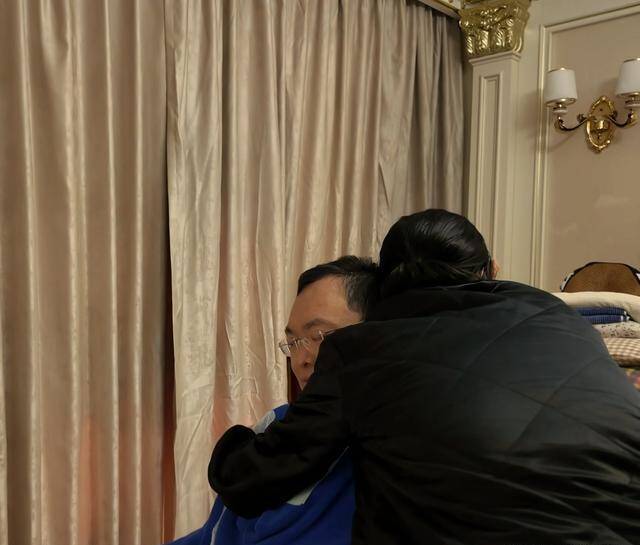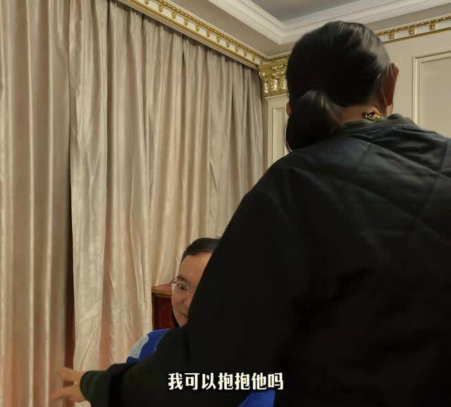 倪萍看到坐在椅子上的蔡磊,满眼心疼,她轻声询问蔡磊家属,可以抱一抱他吗?