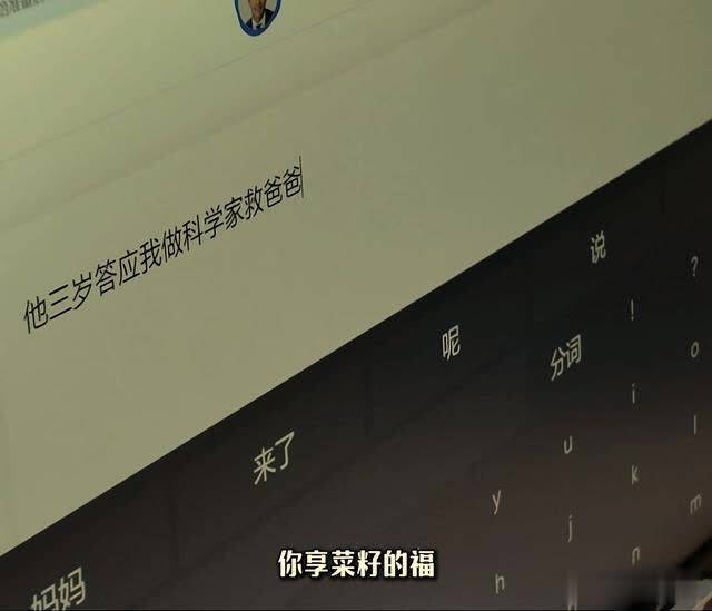 蔡磊通过眼控仪打字回复称:菜籽三岁的时候答应蔡磊,长大做科学家救爸爸。